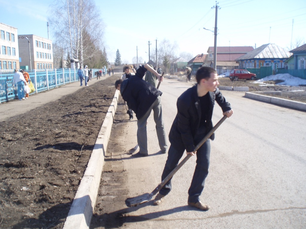 10 апреля учащиеся 8-х и 10-х классов организованно вышли на экологический субботник. Была убрана вся проезжая часть около школы: очищены бордюры для дальнейшей побелки, подметены тротуарные дорожки.